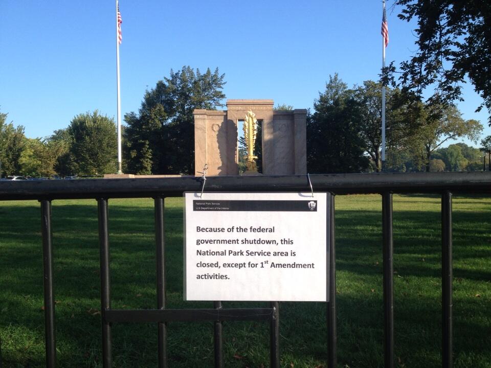 I would guess that the sign was posted by a true Constitutional patriot who happened to be employed by the very Government that they loath and found an ingenious way of “closing” the park and “following orders” but who in fact, gave every single visitor a perfect excuse to ignore the shutdown and just go damn use the park anyway! Brilliant! Thank you, silent, anonymous, patriotic Government employee! Though employed by Government, you also respect that you are in fact employed by the citizenry and are dutiful to the U.S. Constitution. Bravo! Keep up your vigilance and your ingenuity.