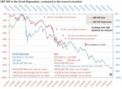 Here is a frightening chart (H/T Gateway Pundit) which shows how the current economic crisis is tracking way to well with the Great Depression (click to enlarge):